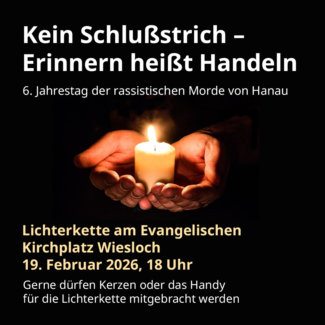 „Kein Schlussstrich – Erinnern heißt Handeln“ 19. Februar 2026, 18 Uhr, Evangelischer Kirchplatz Wiesloch Am 19. Februar jährt sich zum…