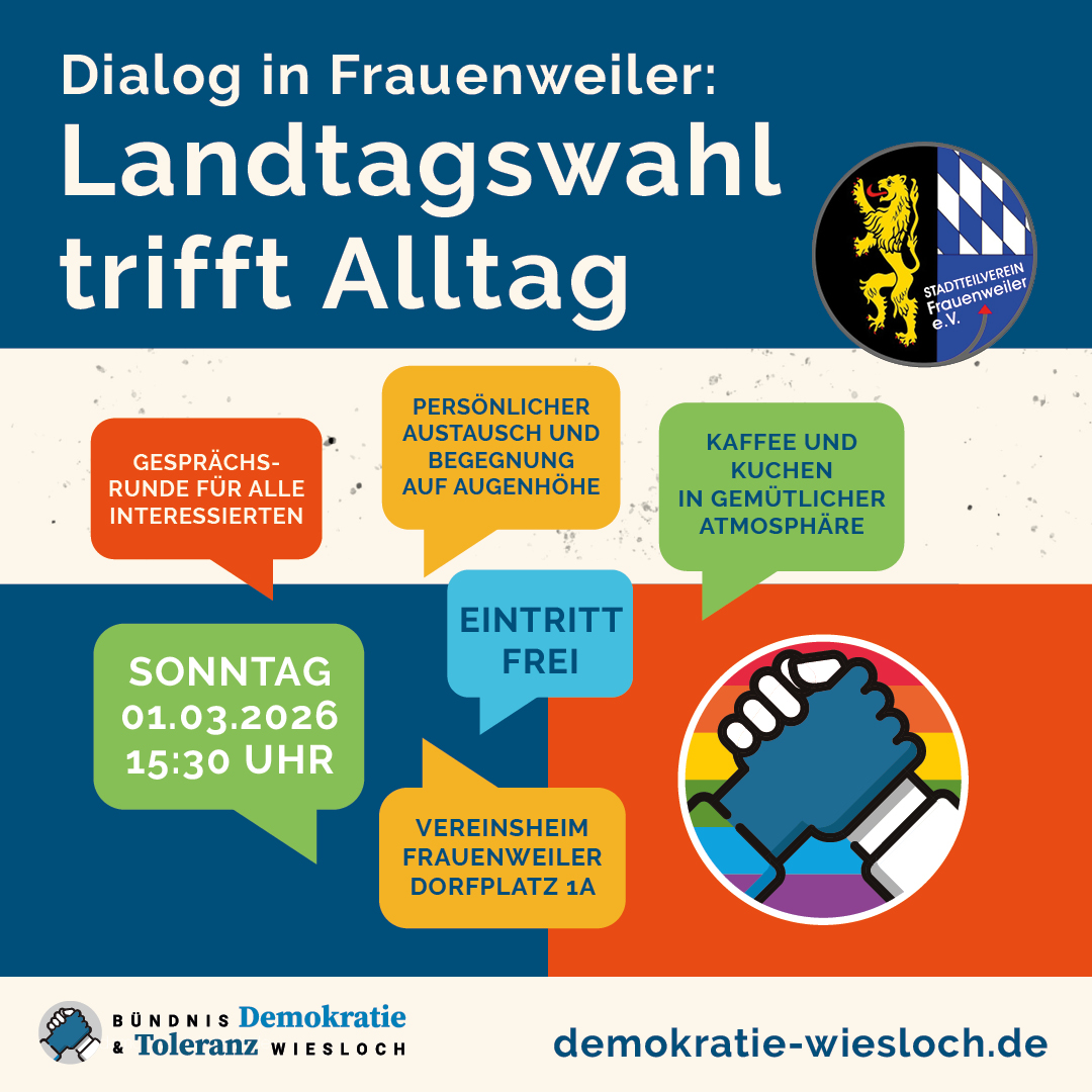 Wir unterstützen und organisieren Projekte und Aktionen in Wiesloch und Umgebung um Demokratie und Vielfalt zu stärken.